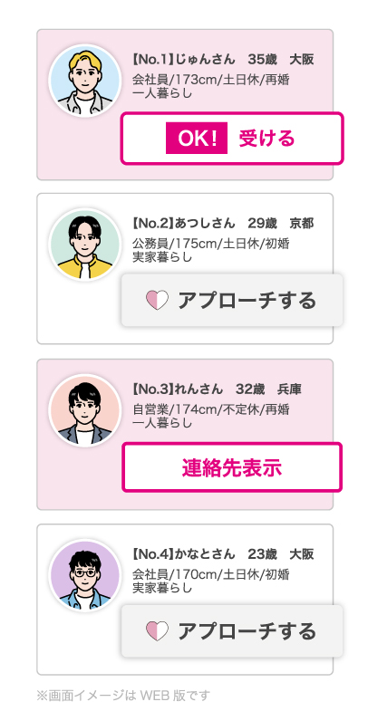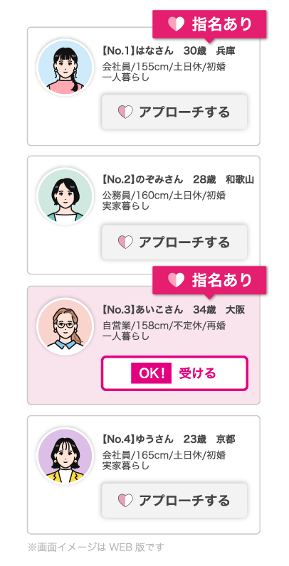 パーティー終了後、気になったお相手にアプローチができる機能です。