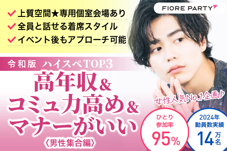 必ず全員と話せる☆彡【ハイスペ男性】との出会い♪個室婚活パーティー~真剣な出会い~