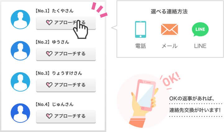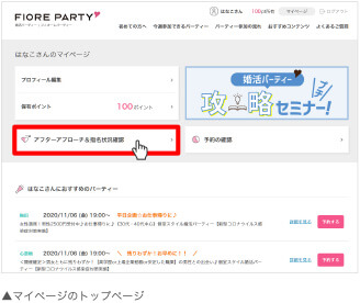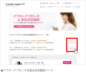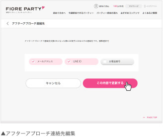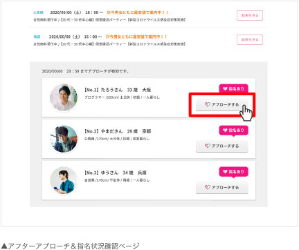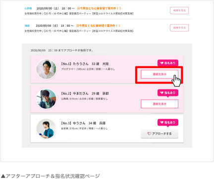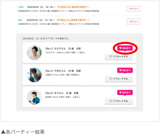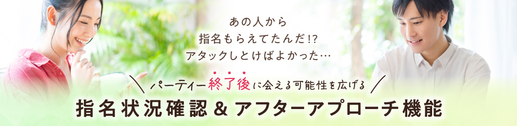 パーティー終了後、気になったお相手にアプローチができる機能です。
