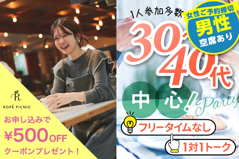必ず全員と話せる☆彡【30代40代中心編】個室婚活パーティー~真剣な出会い~