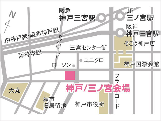 〒650-0021 兵庫県神戸市中央区三宮町1-4-11 ラティス三宮 1F/2F