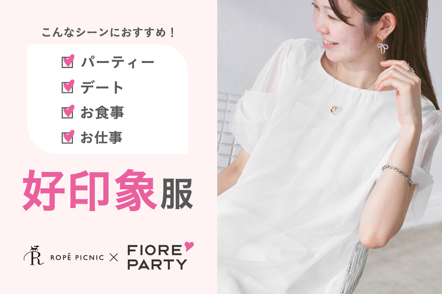 フィオーレパーティーは、普段使いからオフィスカジュアルまで幅広いシーンで対応できるナチュラルで可愛らしいデザインが特徴のロペピクニックとコラボレーションイベントをおこないます。
