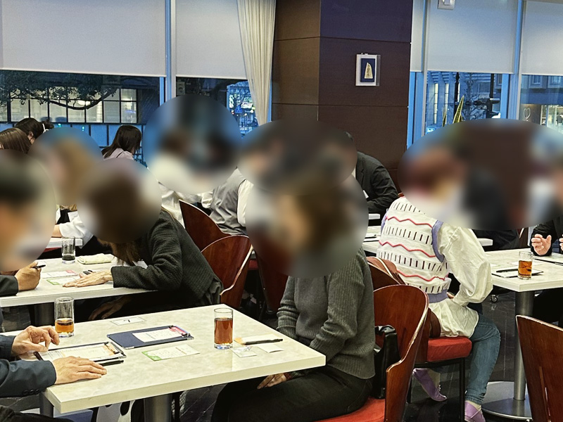 当日は男女11名ずつ全22名が参加。まずはグループに分かれて簡単に自己紹介の後、ビュッフェスタイルでランチとデザートを楽しみながらグループトーク。グループトーク中はワードウルフゲームで盛り上がりました。