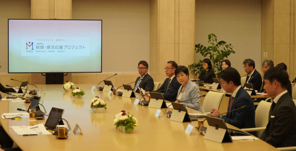 一般社団法人日本結婚相手紹介サービス協議会(JMIC) 副理事長を務める、株式会社TMSホールディングス代表取締役社長 の吉末育宏が本ミーティングに参加し、東京都知事小池 百合子氏等とともに、社会全体の婚活・結婚の気運を高めるための取り組みついて議論しました。
