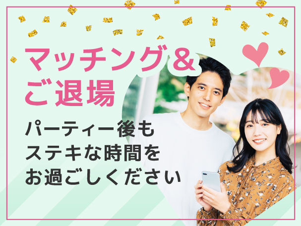 マッチングしたお二人はスタッフがお引き合わせさせていただますので、カップルになったけどパーティー終了後に出会えなかった!ということがございませんのでご安心ください★