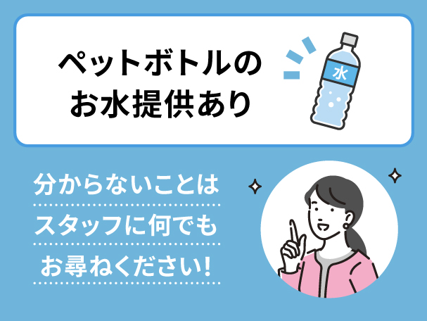 限られたお時間の中でしっかり会話を楽しんでいただきますために、飲食の提供はございませんが、ありがたいペットボトルのお水付きですので、のどが渇いても大丈夫です!