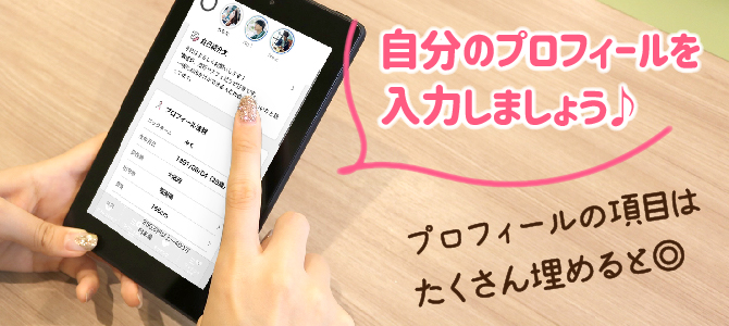 アプリ画面から、事前にプロフィールをスマホで登録できます。面倒な手書き作業がなく、充実したプロフィールを画面で見ながら、スムーズにお相手との会話を楽しむことができます。
