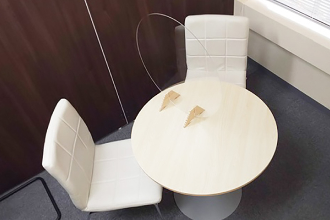 飛沫感染のリスクを回避するため、各ブースに飛沫防止シートを設置しております。
