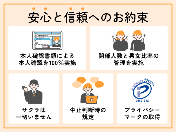 最小催行人数の目安は男女合計5~6名に設定し、予約管理を行い人数調整を行っています。