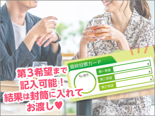 封筒に入れての結果発表となるので、ご本人様同士にしか分からない仕組みで恥ずかしくない♪