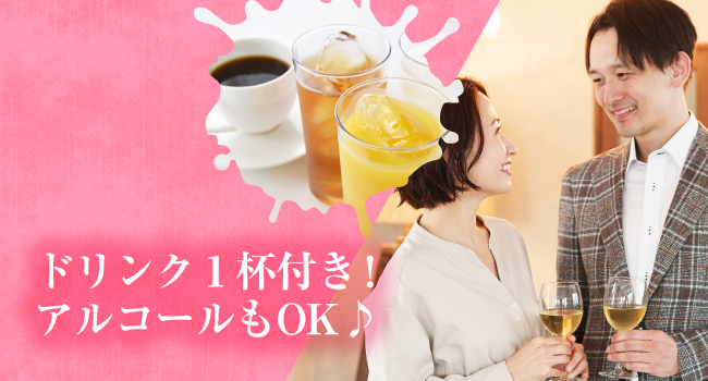 ドリンク1杯付きでアルコールもお楽しみいただけます。普段は人見知りな方も、少しお酒の力を借りて気軽に会話をしてみてはいかがでしょうか?2杯目以降はキャッシュオン形式でオーダー可能です。