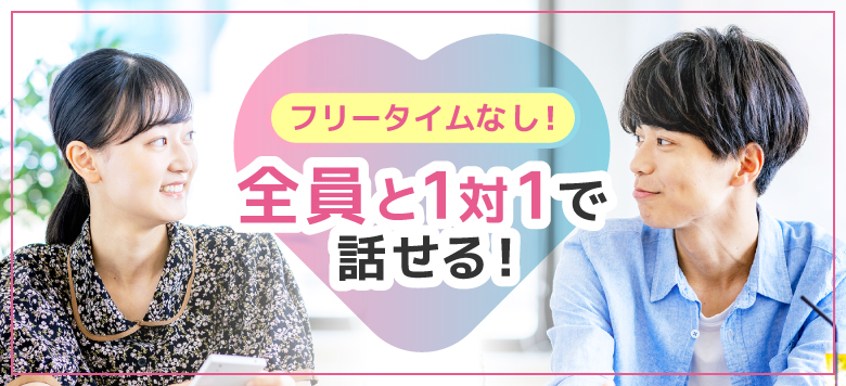 参加者全員の異性との1対1でトークが可能ですので、初めてのご参加の方にも安心してご参加いただけます。