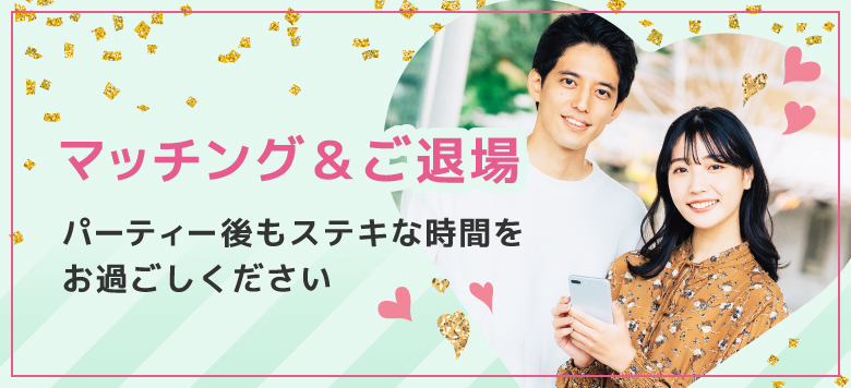 マッチングしたお二人はご一緒にご退出いただきます!カップルになったけどパーティー終了後に出会えなかった!ということがございませんのでご安心ください★