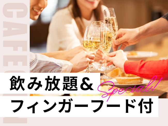 アルコール付飲み放題&テーブルごとにビュッフェ形式で店内調理の美味しいフィンガーフードありで盛り上がること間違いナシです。