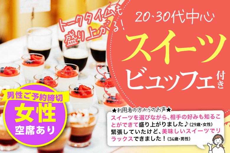 スイーツビュッフェ付きSP♪【20代限定編】必ず全員と話せる☆彡【個室】婚活パーティー~真剣な出会い~